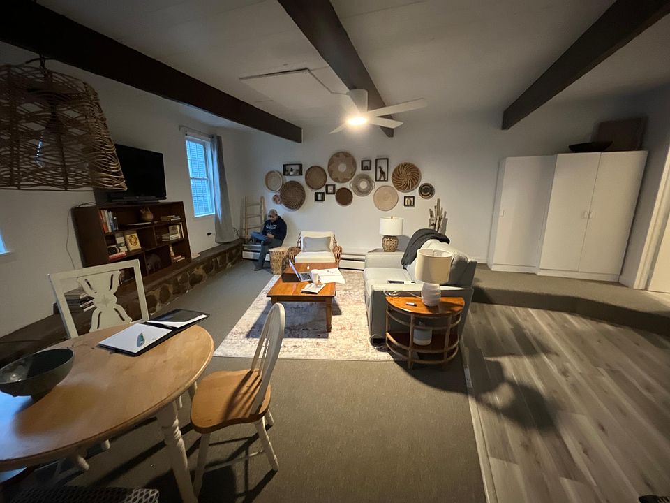 The poolhouse! this apartment is unique it was a poolhouse attached to the back of a mansion and was then converted into its own unit. Its on its own so no one above you. Large lofted ceilings w beams, new granite counters, new cabinets, new appliance, new carpet and flooring. furnished for 2250 a month- heat included. or unfurnished at 2000 a month. off street parking, patio and more. its in the final stages of construction now and will be ready for move in mid january.