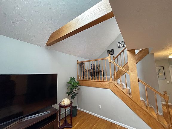 ***NOTE - Some pictures are of the old listing*** Welcome home! This townhouse unit shows more like a single family home with 3 bedrooms and 2 full bathrooms! The main level has a large living room with a beamed cathedral ceiling and skylights, an eat in kitchen with granite countertops and stainless steel appliances, a generous bedroom, and a full bathroom. Upstairs has two more large bedrooms and another full bathroom. The large finished basement is the perfect retreat, with an open flow to watch the game, a bar for entertaining, and plenty of storage space. Hardwood floors throughout and a garage! The complex is 100% owner occupied, was just painted, the roof is newer, and the windows are all updated! Convenient to everything, this one won’t last!