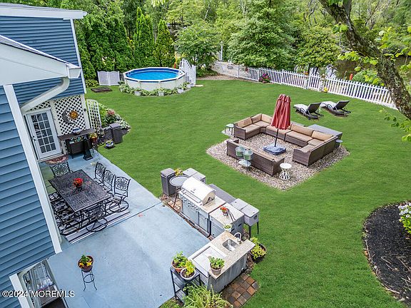 Impressive Large Bi-Level located in the Desirable Chapel Hill section of Brick. This property is an Outdoor Wonderland that has private access to Kettle Creek. Perfect for Fishing, Kayaking and Paddleboating! Manicured lot with above ground pool and plenty of entertaining space with a backyard Kitchen. Open Living and Extra Long Dining room. Extra Large eat in kitchen has an Island with Quartz countertops. Primary Bedroom with primary bath, 2 bedrooms and full bath complete this floor. Lower Level features Living room with fireplace, Bar and table area, 3 Season room and half bath complete this floor! Great Home for entertaining! 2 Car garage with extra storage. Close to Beaches, Marina, Restaurants, Shopping and Major Transportation! Check out this Wonderful Home!!