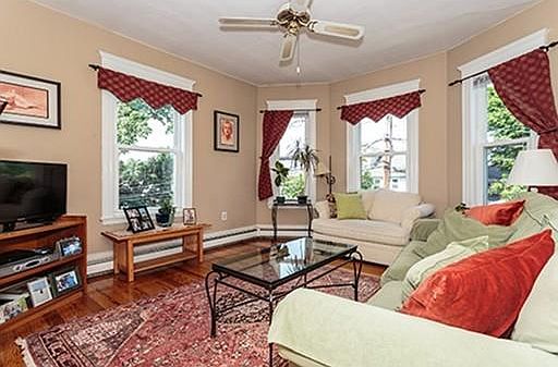 Bring more light to your life! This second and top floor condo home is flooded with natural light. Lots of room to breathe with skylights and nine foot ceilings. Two bedrooms on the top floor and one on main level (Need a separate office?), eat-in-kitchen with doors leading to the private tree top deck, which feels like an extension of your living room. Great entertaining space! There is extra storage for your bikes in the basement, two car parking. Shared yard. Roof (2010), furnace (2005), hardwood floors throughout, in-unit W/D. No condo fee. Master insurance $1551 split 50/50. Minutes to grocery store, restaurants, cafes, shopping, buses, Harvard and Watertown Squares. If convenience is important to you, this is your home!