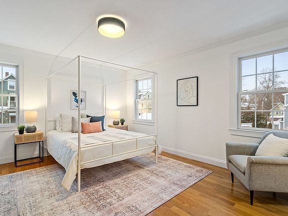 Tucked away on a tranquil E. Arlington side street, just steps from where Arlington meets Cambridge/Somerville, sits this young 3 bed / 2.5 bath townhome. Built in 2005, this 2200+ sq. ft. residence boasts an open living/dining/kitchen. Show off your cooking skills in your modern kitchen with granite counters, stainless-steel appliances & ample cabinet storage. Relax in your living room w/gas fireplace. Up one flight, you’ll find two good-sized bedrooms & common bath w/tub. The primary bed features ensuite bath and double closets. The top floor features a large third bedroom w/closet, skylights & under-eve storage on two sides. Lower level offers two distinctive spaces – a finished flex space for a family room/gym/play space & adjoining unfinished space for storage or home workshop. A/C, two porches, common yard with your own deeded raised bed garden. Steps to Waldo Park, Capitol Theater, shops/restaurants and bike paths, and convenience to Whole Foods, Rt 2 & Alewife T stop.