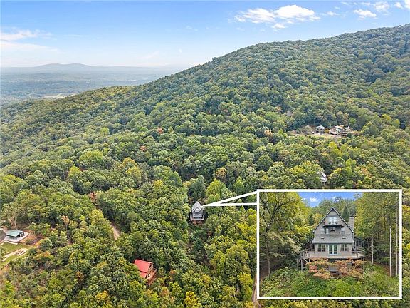 Perched atop Mount Yonah, this craftsman-style cabin captures sweeping, year-round views across nine mountain ranges. Set apart for ultimate privacy, it blends rustic character with modern comforts—ideal as a full-time retreat, private escape, or lucrative investment. The home’s three levels balance open gathering areas with private retreats, all oriented toward the mountains beyond. On the main floor, a soaring stone fireplace and slate flooring set the tone, flowing seamlessly to the wraparound porch—partially screened for four-season enjoyment. Upstairs, the primary suite offers a true sanctuary with a new custom tile shower, a freestanding glass pedestal sink on a vintage base, and a private balcony where horizons stretch endlessly. Outdoors, the setting is as captivating as the views. Native plantings and mature greenery provide both beauty and privacy, while a circular gravel drive and stone archway create a storybook arrival. At the entrance, a whimsical architectural touch reminiscent of a fairy-tale gingerbread cottage hints at the magic waiting inside. With a freshly painted exterior, newer roof, and timeless character, this home is ready for its next chapter. Surrounded by natural wonders, the property is minutes from Helen’s alpine village, scenic hiking trails, and world-class fishing on the Chattahoochee and Soque Rivers. Award-winning Serenity Cellars Winery is literally just down the road, adding to the charm and convenience. Whether you’re savoring sunsets on the porch, exploring nearby trails, or sharing the mountain magic with guests, this property offers peace, privacy, and panoramic views that make it both a dream retreat and a highly desirable vacation rental opportunity.