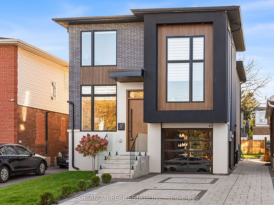 Stunning Contemporary Masterpiece. A Perfect Blend of Luxury, Architecture & Design Excellence.Welcome to this modern architectural showpiece in the heart of East York, where contemporary elegance meets inspired living. Designed with impeccable attention to detail this fully renovated 2 storey home offers the perfect harmony of artistry, comfort, and function. Step inside to discover a bright open-concept layout adorned with geometric accent walls, architectural wood detailing, and illuminated glass-railed staircase highlighted by halogen lighting and a skylight throughout. The main level showcases seamless flow between the living, dining, and family areas, ideal for both entertaining and everyday living. The family room is the heart of the home, featuring a striking marble fireplace, custom built-in shelving, and a walkout to a private deck w glass railing. Gourmet kitchen is a true chef's delight, boasting sleek custom cabinetry, stone countertops & backsplash. A truly unique feature of this home is the 2-storey bdrm suite, complete w 3pc ensuite & private staircase leading to loft-style retreat perfect as a home office, studio, or lounge. Upstairs, each bedroom offers an ensuite & either a walk-in closet or custom built-in closet, emphasizing both luxury and practicality. The primary suite exudes sophistication, featuring a spa-inspired ensuite with a freestanding tub, glass shower, double vanity, custom walk-in closet w built-in shelving & lighting reminiscent of a high-end boutique. Step onto the private balcony overlooking the backyard. Finished walk-up basement expands your living space with a bright recreation area, bedroom & 4pc washroom. Step outside to the private backyard with a deck, perfect for outdoor dining and relaxation. Located minutes from top-rated schools, the Danforth, lush parks, the DVP, and TTC access, it offers an unparalleled lifestyle in one of Toronto's most desirable neighbourhoods.