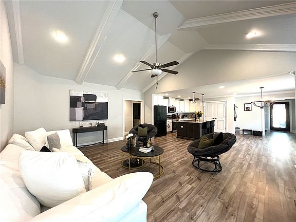 Like NEW. Immaculate 5BR/2.5bath 2698 sqft smart home w/ open floor plan. Large living room w/ cathedral ceilings & fireplace. Beautiful kitchen w/ granite countertops, ss smart appliances, island/breakfast bar, dining area, & pantry. LVP flooring throughout main living space. Spacious master bedroom w/ walk-in closet, & master bathroom w/ dual vanity, granite, separate tub, & amazing tiled shower. 4BR/2bath on main level, 1 oversized BR/bonus room w/ half bath upstairs. Covered front porch, 2-car garage, & private, fenced backyard w/ patio. Gutters throughout. This is a must-see