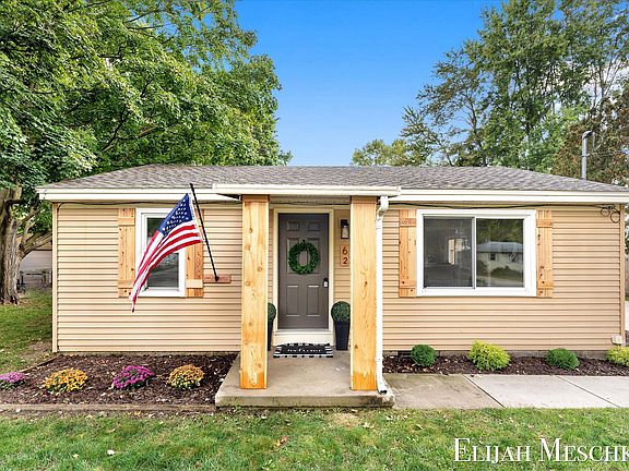 Welcome to 62 Kenton St SE, a beautifully remodeled 2-bedroom, 1-bath home tucked away in a charming, quiet neighborhood in Southeast Grand Rapids! From the moment you arrive, you'll love the curb appeal with its inviting front porch, nicely paved driveway, and beautiful front yard. Step inside to find a bright and spacious living room that flows seamlessly into the brand-new kitchen, complete with modern cabinets and countertops as well as new appliances. The layout offers easy living with a comfortable master bedroom, a second bedroom, and a stylishly updated full bath. The laundry and utility room provides extra convenience and features direct access to the large, fenced-in backyard - perfect for entertaining or relaxing. Outside, you'll also find a 1-stall detached garage with plenty of storage space and a side patio area ideal for grilling or patio furniture! With all-new updates, a great location, and plenty of charm inside and out, 62 Kenton St SE is move-in ready. Schedule a showing today and make this house your home!