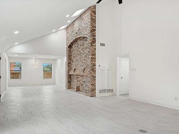 STUNNING RENOVATED 4-bed. 3-bath home in the coveted Meadows West. This exceptional home blends refined luxury with a low-maintenance, zero-lot-line design-perfect for elegant living without compromise. From the moment you step inside, the home impresses with a dramatic soaring ceiling in the living room, complemented by beautiful floors and a classic brick fireplace providing warmth and sophistication. This home is flooded with tons of natural light, a remodeled interior, open and versatile floor plan and storage galore. The gourmet island kitchen equipped with premium appliances, designer finishes, a walk-in pantry and opens to a charming breakfast room framed by large windows. The primary suite is located on the main level, offering a private retreat, while a second downstairs bedroom- ideal as a refined home office or study - adds flexibility. Upstairs two generously sized secondary bedrooms are connected by a large, well-appointed jack and Jill bathroom.