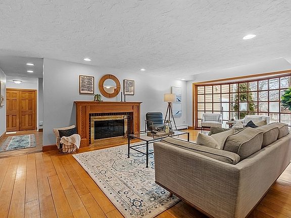 This spacious contemporary colonial is the best value in town and offers ONE LEVEL LIVING as well as MULTI-GENERATIONAL LIVING and WORKING FROM HOME! The main floor consists of the sunny living room with massive picture window and fireplace, a family room that leads to the charming wraparound screened porch, kitchen, pantry, dining room, full bathroom, bedroom, laundry room, and an oversize two car garage with storage room. Upstairs you will find the primary suite with a full bathroom and walk-in closet, two more bedrooms, the third full bathroom, two offices, a large bonus room, and access to the walk-up attic that provides tons of storage space. The top level has a second enormous bonus room with a large closet and an attached bathroom which creates a private space for long-term guests. Roof replaced in 2023, boiler and water heater in 2018, microwave and fresh paint in 2024. Gas heat, town water, partially plumbed for mini-splits, and less than a mile from the MBTA train to Boston.