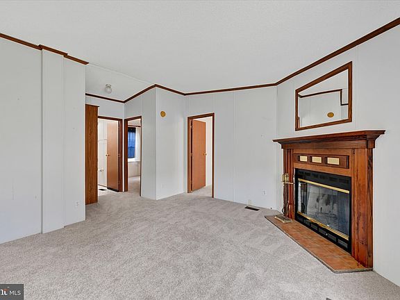 Bright and welcoming 3 BR, 2 BA 1998 manufactured home (1,352 sq ft) in desirable Reeds at Bayview. Open-concept design with vaulted ceilings, large kitchen with ample storage and full dining area, separate laundry by back door, and cozy wood-burning fireplace. Primary suite features large closets, soaking tub, and separate shower. Updates include new carpet (2025), roof (2014), propane furnace (2021), and central air. Includes washer/dryer and shed. Enjoy quiet, single-level living close to shopping, I-95, and local amenities. Financing through APGFCU or 21 Century Mortgage. Park Approval Required.