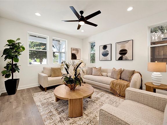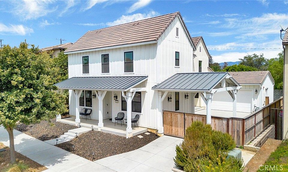 Welcome to this newer-built 4-bedroom, 3-bathroom home, located in The Farm, one of Ventura’s most sought-after communities. Designed with both style and functionality in mind, this residence offers a perfect balance of luxurious finishes, a thoughtful layout, and everyday comfort. From the covered front porch to the moment you step inside, the home impresses with its impeccable attention to detail. Elegant vinyl plank flooring and a bright, contemporary palette set the tone throughout. The open-concept living space seamlessly connects the kitchen, dining, and family room, making it ideal for entertaining or relaxing with loved ones. At the heart of the home is a chef’s dream kitchen, featuring quartz countertops, upgraded appliances, a gas cooktop, and a spacious island that serves as both a breakfast bar and a central gathering place. A walk-in pantry and coffee bar offer abundant storage, ideal for culinary enthusiasts. Downstairs, a private bedroom provides a perfect guest suite or home office. A versatile flex room adds even more function—ideal for formal dining, a second office, or a playroom. A convenient hall bath adds extra practicality to the main level. Upstairs, the expansive primary suite offers a peaceful retreat complete with a custom walk-in closet. The spa-inspired bathroom features quartz finishes, dual vanities, a soaking tub, and a large walk-in shower. Two additional bedrooms share a full bathroom with dual sinks, and a conveniently located laundry room simplifies daily routines. Step outside to your own private backyard oasis, which includes a covered patio, concrete pavers, a turf lawn, and privacy fencing. A gated porte cochere adds charm and privacy, leading to an oversized 2-car garage. Best of all, there are no HOA fees or Mello-Roos. This home is a rare opportunity to enjoy upscale living in a vibrant, community-oriented neighborhood, just minutes from Ventura’s beaches, trails, parks, and downtown charm.