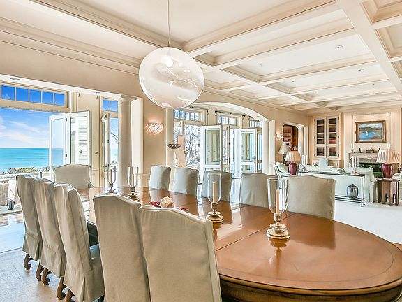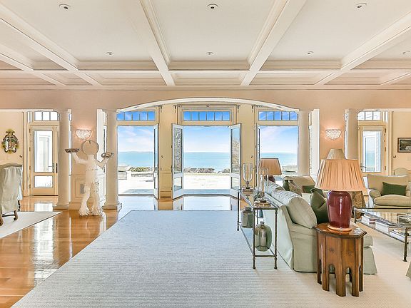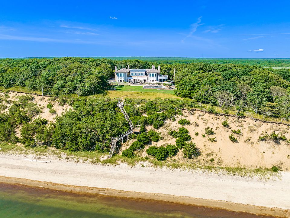 Sweeping water views combined with architectural splendor distinguish this world-class beachfront sanctuary. Ten protected acres of The Nature Conservancy provide total privacy. The serene and elegant house sits on a bluff with commanding vistas of Gardiner's Bay and Napeague Bay. The direct 163 ft. sandy beach adjoins an additional 343 ft. of reserve beachfront on idyllic Louse Point just minutes from the charming villages of Amagansett and East Hampton. The elegant house was designed by architect James D'Auria to maximize the endless water views throughout the house. The home's impressive two-story entry opens to an expansive great room with an elegant living room and dining room. A wall of glass doors leads outside to multiple terraces, an infinity pool, spa and stairs to the beach. Additional living areas on the main floor include an impressive wood-paneled executive library, a family room with an adjoining covered patio, a large media room and a gourmet kitchen with state-of-the-art appliances. The main floor includes a powder room and a full bathroom. A custom-crafted, wrought-iron main staircase leads to a second floor sitting area connecting the 6 en-suite bedrooms. The expansive primary suite has beautiful views of the water and includes a sitting area with a fireplace, a large outdoor terrace, two walk-in closets and a bathroom with radiant floor heating, double sinks, a marble soaking tub, a steam shower, two additional half bathrooms and a separate sauna. Four of the spacious guest bedrooms have water views and the fifth opens to a large private terrace. The finished lower level adds over 2,000 sq ft bringing the total indoor square footage of this impressive estate to 9,500+. Separate lower entrance and half bath make this flexible space ready for a variety of uses. The oversized four-car garage with cabinet storage is a sought-after feature. Artisinal craftsmanship and luxury finishes are evident throughout the elegant home in the hardwood floors, custom cabinetry, paneling, six French antique stone mantles and state-of-the-art lighting, sound, and security. This is a rare opportunity to own a completely private, extraordinary waterfront estate.