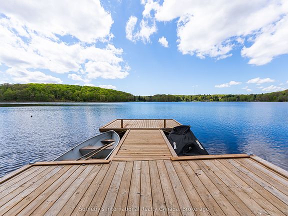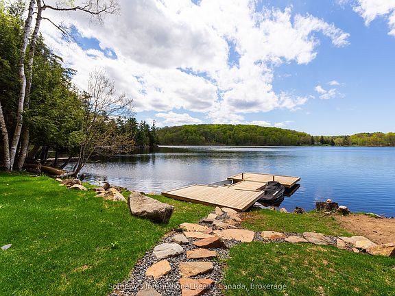 Welcome to 62 Mill Lake Trail - a stylish, turn-key retreat with over 275 feet of owned shoreline and exceptional privacy at the very end of the road. Set on a west-facing lot, this fully winterized cottage enjoys all-day sun and postcard sunsets across Mill Lake. A sandy beach, large swim dock, and multiple decks offer effortless lakeside living, while the setting provides peace and seclusion rarely found this close to town. The bright and functional layout includes 3 bedrooms plus an office, 2 full baths, and a finished lower-level rec room. Recent upgrades include a new septic system, modern appliances, and a high-efficiency heat pump for year-round comfort. An area has already been cleared for a potential garage or bunkie, offering added flexibility for future expansion. Just 15 minutes to Parry Sound and Highway 400, with easy year-round access and proximity to trails, golf, and more - this is a move-in-ready waterfront package that truly checks all the boxes.