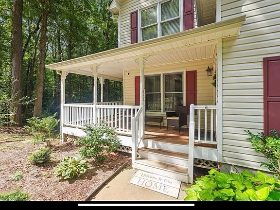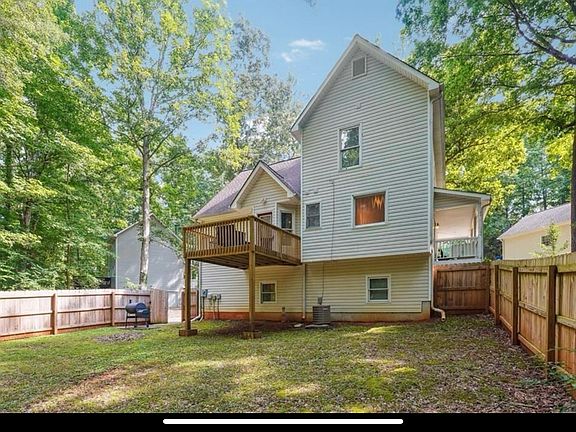 FINISHED BASEMENT. Upgrades include BRAND NEW PORCH, DECK, PATIO, two-car garage with custom built-in cabinet, black wood flooring, ceiling fan in each bedroom, freshly painted gourmet kitchen, living area and primary suite. Cozy family room boasts a warm fireplace. Gourmet kitchen