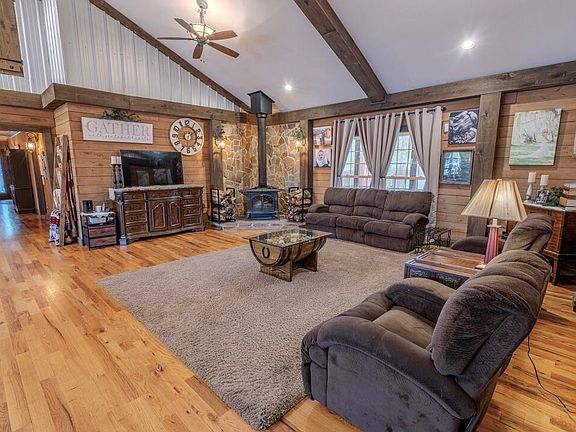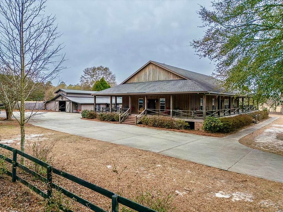 Congratulations! You have just found one of the most exquisite properties in South Carolina. The property sits on 2.5 acres, only minutes away from SRS, Aiken, and just three miles away from the Sweetwater Country Club Golf Course in Barnwell. Everything about this property was built with careful planning and thoughtful design. The owners meticulously designed the space and hit perfection. The open floor concept includes a seventeen-foot vaulted ceiling, hardwood floors, natural wood shiplap, wood beams, and galvanized sheet metal for accents.The oversized living and dining area are ideal for entertaining large gatherings and you will not want to miss the double barn door attic access where you could create additional space if desired. The focal point of the entire room is a charming wood-burning stove that radiates a comforting glow and warmth. The layout is designed to circulate heat effectively throughout the combined space. Custom kitchen cabinets complement the commercial size and grade gas stovetop, built-in double ovens, and stainless farmhouse-style sink. The kitchen can also accommodate six in the bar area. Adjoining the kitchen are two large pantries that lead to a spacious laundry room. A second living room/game room can accommodate a pool table and sitting area with three walls of windows for an abundance of natural light and a panoramic view of the swimming pool and deck. On cool days, a set of ventless gas logs are available to use as another supplemental source of heat. On the opposite side of the home are four bedrooms with two jack-and-jill style bathrooms complete with wood-style double vanities. Another full bathroom with easy access shower is located on the other end of the home near the laundry room. This really is an outstanding property with outstanding possibilities and completely unique. The home has interior/exterior doors which are all 36 inches wide for wheelchair access if needed. Bedrooms, bathrooms, and laundry room are with nine-foot ceilings. The over 6-foot-wide 34-foot-long hallway is a classic architectural feature, designed with a galvanized ceiling. Hallways can be more than just a passageway; it can be a statement space, offering opportunities for multi-functional use and adding to the overall character of the home. There are also two electric forty-gallon water heaters located under the home-one for use on each side of the home. Central heat and air add an additional source of heating/cooling for the home. The porches are ten-feet wide and wrap around the home while offering four optional solid brick step entryways with handrails. The property has two submersible four-inch wells for water. There is also a partially closed heated and cooled 3-bay dog kennel, a two-car open garage with adjoining closed side for storage, a large architectural barn designed workshop designed for car lift height access, and an almost completed outside kitchen with additional covered outside dining area. There are two electric meters for the home and the shop. The shop/kennel has its own meter separate from the home. The property has a paved driveway and sidewalk, paved patio, and a paved basketball court. Trash pickup is provided one day a week included in property taxes.