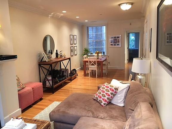 Condo-quality, second floor, floor-through 2 bedroom, 2 bath steps from the restaurants and shopping of Charles and Cambridge Streets in Beacon Hill. All the perks you would want-central air, gas FP, lovely high-end kitchen and baths, hardwood floors throughout; laundry in unit; excellent storage in unit and common storage available in basement. Dog may be considered on a case by case basis. NOTE: Photos are of a similar unit in building.