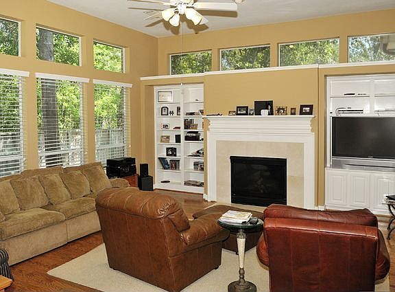 Reduced $22,000-Recent INT/EXT PAINT- Fast commute w/Kuykendahl now open to FM1488/ Research Forest open to 2978-Village Builders home on cul-de-sac. Private & quiet! Extensive wood floors, built-ins, study w/French doors could be 4th bedroom, kitchen w/stainless appliances & dbl oven, master bed down w/dbl sinks & whirlpool tub, gameroom up w/secondary bedrooms@opposite end from mstr,deck overlooks private greenbelt yard- very wide easement and farmland past easement.