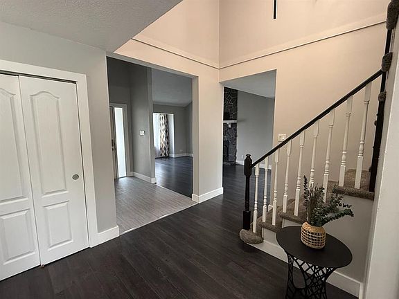 Step inside this stunning 1986-built, 1 ½ storey home and be welcomed by its soaring ceilings, grand staircase, and abundant natural light. With impressive square footage and a massive lot, this home offers both space and style for your family to thrive. The main floor features a modern, functional kitchen complete with stainless steel appliances, an island, and plenty of cabinetry, seamlessly flowing into an ample dining area perfect for entertaining. The large living room is anchored by a striking stone-accented wood-burning fireplace, creating a cozy yet elegant gathering space. A sunken family room with a second stone fireplace, giving on to the garden doors leading tho the back deck, provides even more room to relax or host guests. The welcoming large entryway, main floor laundry, and a convenient 2-piece bathroom add to the home’s functionality. Upstairs, you’ll find a main 4-piece bathroom and two generous bedrooms, along with a private primary suite boasting its own 3-piece ensuite and walk-in closet. The finished basement offers excellent versatility — a fourth bedroom, a den/home office, an expansive family room, an additional 3-piece bath, plus a utility and storage area to keep everything organized. Outside, enjoy the huge backyard with direct access to Festival Park, the dog park, and serene green spaces — a rare and highly desirable feature. The 22’ x 22’ attached garage with an 8’ x 16’ overhead door adds both convenience and value. Recent upgrades give peace of mind and efficiency: Dishwasher (Sept. 2025), Two new furnaces (Sept. 2025), Shingles (Approx. 2017), Upgraded windows (Approx. 2019), Smoke & CO2 detectors (Sept. 2025). This home blends classic charm with thoughtful updates, offering incredible space, comfort, and a sought-after location backing onto parks and trails. Don’t miss the opportunity to own this beautifully maintained, move-in ready home!