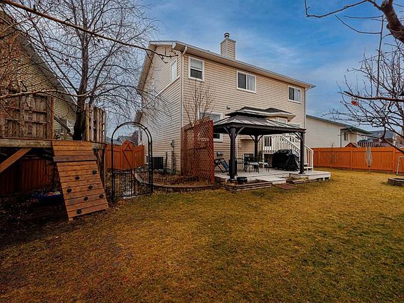OPEN HOUSE SAT NOV 22 2:00-4:00pm. This spacious family home in the popular community of the Canals offers a wonderful layout, thoughtful updates and a generous backyard - all within walking distance of neighbourhood schools. Fully developed, with 5 bedrooms, 3.5 bathrooms and ample living space spread across three levels. The main floor has a welcoming front entry that leads to a private office framed by a large window overlooking the front yard. A formal dining room sits nearby and can be used to suit a variety of needs, whether hosting gatherings, or for day-to-day activities. The centrally located kitchen features abundant counter and cabinet space, island and corner pantry. The kitchen flows easily into the bright dining nook overlooking the backyard. From here, the space opens into the great room, where a stunning gas fireplace creates a warm focal point. Upstairs, the primary suite offers a comfortable retreat with a five-piece ensuite that includes a dual-sink vanity and a relaxing soaker tub, as well as a walk-in closet. Directly beside the primary bedroom is a den suited for reading, work, or quiet reflection. Three additional bedrooms and a four-piece bathroom complete the upper level. The fully finished basement extends the home’s versatility with an open recreation area, additional bedroom, bathroom and storage room. The attached double garage leads into a mudroom with closet and laundry area. Outside, the home sits on a large, pie-shaped private lot enriched with many mature trees, established garden spaces, and a charming tree house for children to enjoy! An impressive deck complete with a gazebo provides a sheltered outdoor spot for relaxing or entertaining through the seasons. Recent improvements include central A/C, fresh paint and new flooring, bringing a clean and updated feel throughout the home. The Canals community in Airdrie is known for its convenient pathways, numerous amenities and quick access to schools - making it a sought-after area for families. This home is perfectly located walking distance to Ralph McCall School, Our Lady of Peace School and C.W. Perry School. Take advantage of your opportunity to see this incredible property in person - book your showing today! Be sure to check out the floorplans and 3D tour for a closer look before your visit.