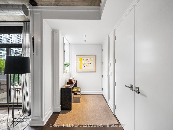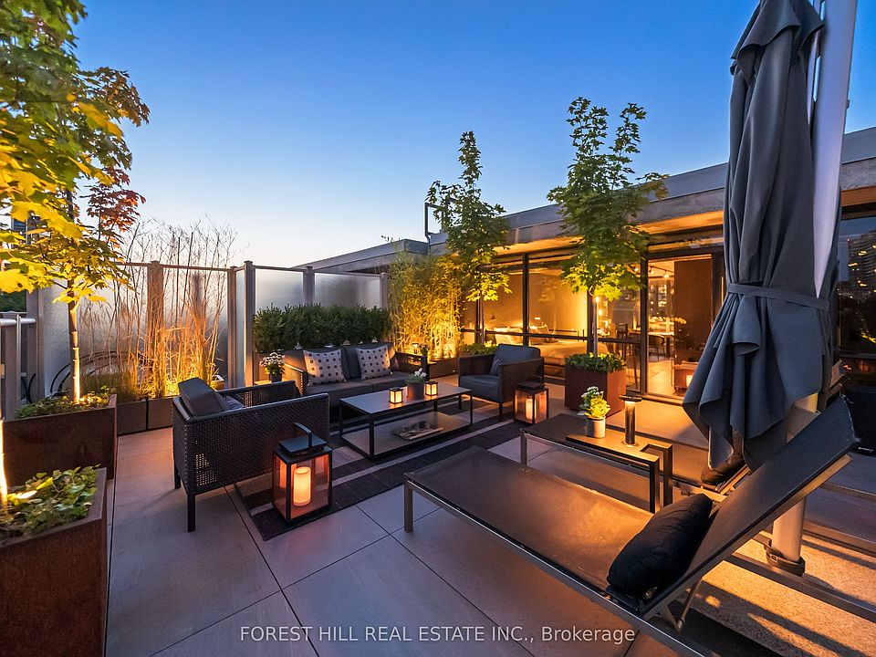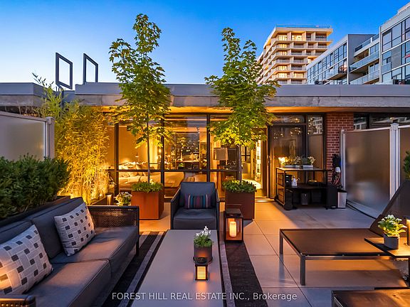 Your King West dreams are made of this. Welcome to this bespoke two-storey penthouse,custom-designed and newly rebuilt from top to bottom. This designer's own residence offers over2100 square feet of sophisticated interior and exterior loft-style living space in the heart ofToronto's vibrant King West neighbourhood. Located in a discreet 6-storey boutique buildingwith only two units per floor on a quiet, tree-lined street, this extraordinary penthouseseamlessly blends industrial loft charm with luxuriously refined designer finishes. Not justone, but three private north and south-facing landscaped terraces totalling 610 square feet ofsophisticated outdoor living space are perfect for entertaining or enjoying quiet momentsoverlooking the city skyline. The south-facing living room features exposed concrete ceilingsand ductwork juxtaposed with custom Brenlo mouldings and walks out to a terrace with anunobstructed south view over treetops. The kitchen features brand new Miele appliances, whilethe adjacent dining room comfortably seats 8 guests. The family room steps out onto a gorgeousnorthwest-facing terrace with a BBQ gas line, dining area, and Veradek planters with integratedlighting. Walk up to the extraordinary second-floor retreat, a true lifestyle experience.Featuring unobstructed north and south-facing windows, custom white oak millwork in the primarybedroom, and a 5-star ensuite with a steam room, spa shower, freestanding tub, and customgold-plated fixtures. The crown jewel is the remarkable south-facing rooftop terrace, perfectfor summer entertaining and fully landscaped with Veradek and corten steel backlit planters, a6-zone custom irrigation system and large-format porcelain tiles. Ideally located within easywalking distance to the best of King Wests world class amenities, including restaurants, bars,The Well, Billy Bishop Airport, and the Stackt Market, this penthouse offers a refinedlifestyle in the heart of the city.