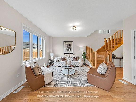 Welcome to your next chapter in the heart of Millbrook, where comfort, style, and community come together in this beautifully crafted 5-year-old Bromont-built home. From the moment you arrive, you'll notice the timeless all-brick exterior, double car garage, and room for four-carparking perfect for growing families or those who love to host. Step inside to a warm and inviting open-concept layout, where hardwood floors and modern tile flow seamlessly across the main level. The heart of the home is the sun-filled great room, perfect for cozy family evenings or entertaining guests. The kitchen is a true showpiece, featuring sleek granite countertops, stainless steel appliances, a large quartz island, and a walk-out to the spacious backyard ideal for BBQs, summer games, or simply soaking up the sunshine. Upstairs, you'll find three generously sized bedrooms, including a luxurious primary suite with double door entry, a massive walk-in closet, and a spa-like 5-piece ensuite complete with a free-standing soaker tub your personal retreat at the end of each day. With a main floor powder room, two full baths upstairs, and an unspoiled basement ready for your vision whether its a home theatre, gym, or play room the possibilities are endless. Set in a family-friendly, rapidly growing neighborhood, this home isn't just move-in ready its the kind of place where you'll want to stay for years to come.