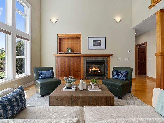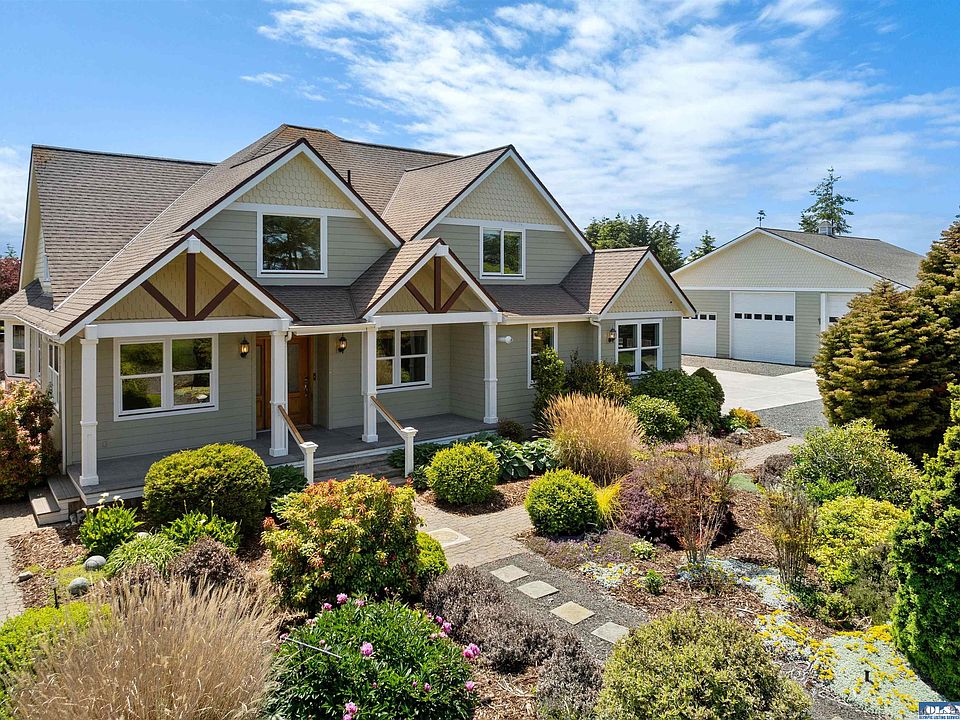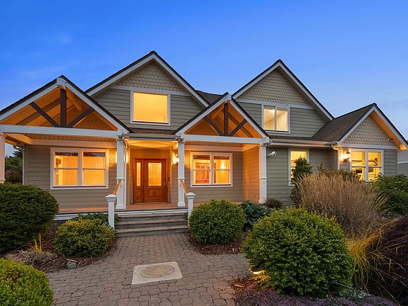 This is the ONE! Located in Sequim's finest waterfront adjacent neighborhoods, this impeccably crafted home sits on 5 beautiful acres w/mountain & water views. Stunning main floor living w/ floor to ceiling windows & primary bedroom. From the covered front porch watch the eagles soar just across the street in the trees above the areas favorite beach, & a stone's throw away from the boat launch. The 1400+ sqft detached heated workshop area is a woodworkers dream & provides ample space for hobbies & toys.