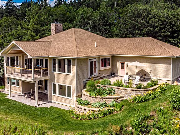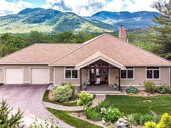 Stunning custom home with mountain views in low tax Bartlett, NH. This contemporary beauty is the place to live in quiet elegance where every day will feel like a vacation. As soon as you enter you are immediately struck by the 180 degree ridgeline view and the exceptional attention to detail employed by the builder/owner. From the custom lighting and beautiful handcrafted staircase, to the covered porches and outdoor patios, to the privacy enjoyed from your main living area, this is truly a dream home. The first floor has all of the essential spaces including a large primary suite with an easy access shower, jetted tub and walk-in closet, a chef's kitchen with a view, large island and pantry, several dining areas, both inside and out, a wood burning fireplace for cozy winter nights, an office, a den, a guest bedroom and bath, and even a first floor laundry . The lower level family rec room has a gas fireplace, wet bar and sliders to the lawn. Additional rooms make a great third bedroom, craft room or fitness area. The utility space is enormous so no worries about places to store items in the off season. Back on the main level you walk out the front door to a lovely porch complete with a porch swing and view to the perennial gardens. Off the kitchen patio and the lower level lawn you will find herbs and more plants where something is always in bloom. Just minutes from skiing, the river, hiking and tax free shopping. A luxury home you will never want to leave.