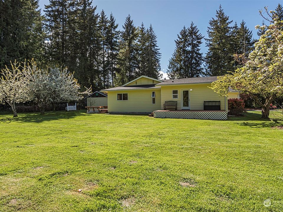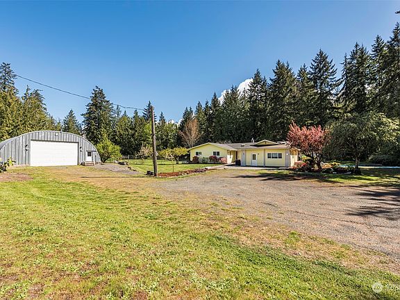 Lovely single level 3 Bed, 3.5 bath home on 1.56 acres w/2000 sf half round barn plus the adjacent one acre of lush forest. Sunny and bright yet very private w/plum, cherry, pear, apple and hazelnut trees - just beautiful! Home features 2 BR suites plus another couple dual purpose rooms to use as you see fit. New quartz counters and new appliances in the kitchen. Trex deck off the back to enjoy the incredibly private backyard with large outbuilding/storage shed. Separate private deck off of primary bedroom. Large living room area with propane fireplace. Plenty of room for everyone, the privacy we crave all with the natural beauty right on your own property. Great location just a few miles south of town.