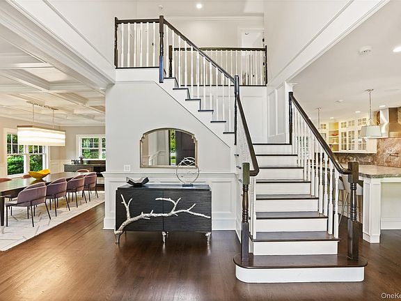 Chic and stylish, this gated, custom-built front porch Colonial is set back amidst broad lawns and lovely landscaping. The home is literally immaculate, move in ready and lives like a 4 bedroom with high ceilings, expansive spaces, and top-of-the-line everything including custom millwork, coffered ceilings, wide-plank hardwood floors, built-ins, and a full house generator. The beautiful kitchen includes marble countertops, Viking professional series stainless steel appliances including a six burner gas cooktop, double ovens, two additional refrigerator drawers and two dishwashers. The primary bedroom suite is luxurious with two custom walk-in-closets, a marble spa bath and a private terrace. The bonus room is a huge plus and is multi-functional with a powder room and wine storage and is accessed directly via the three car garage with EV charging station. Under 5 minutes to town, train, shops and restaurants!