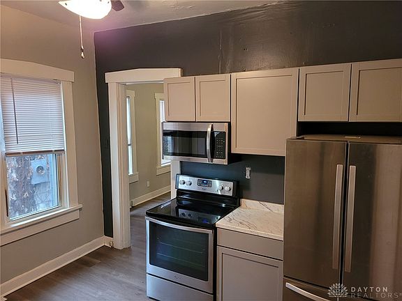 Great opportunity for a first time home buyer or investor!! This 2 bedroom, one bath bungalow with large 6' x 9' storage room offers a new kitchen with stainless steel appliances provided. New bath. New carpet in both bedrooms. New laminate flooring in living room, kitchen and bath. New front door. Fresh paint throughout the home. Exterior painted three years ago. Fenced in back yard. Boiler system rebuilt 4 years ago and maintenance/safety check performed Nov 2025. New electric panel installed 4 years ago. New water heater three years ago. PEX plumbing installed servicing bathroom/kitchen and new PVC drain system to main drain installed 4 years ago. Family owned for 60 years. This property is conveniently located to Downtown Dayton providing numerous choices for dining, entertainment and recreation featuring Dayton Dragon's baseball, Riverscape Metropark, Oregon District and more. Easy access to I-75 and St. Rt.4. Schedule your showing today!!