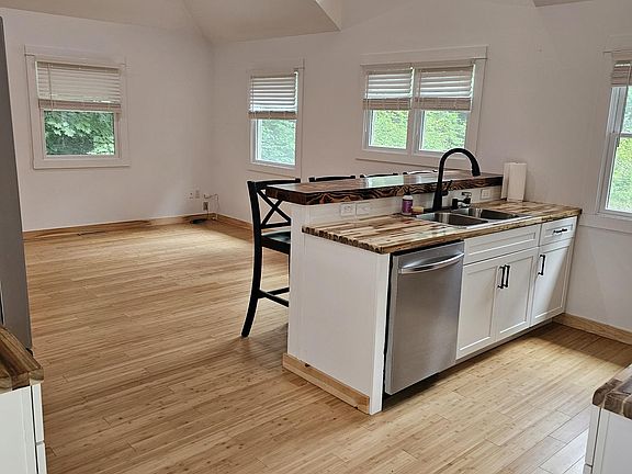 New stainless-steel appliancesModern kitchenClean updated bathroomNew bamboo flooringWasher and dryer in-unitOff streetButcherblock countertops