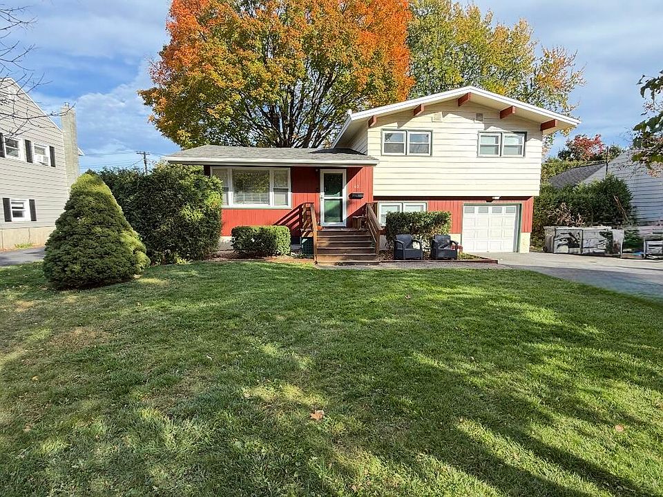 The kitchen provides ample cabinet space and storage. Upstairs, you'll find three comfortable bedrooms and a newly renovated full bathroom. The lower level includes an additional bedroom and a full bath. The basement offers excellent potential and can easily be finished to create additional living space. Close to schools, shopping and restaurants.