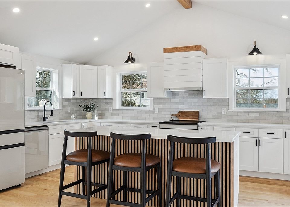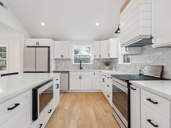 OFFER ACCEPTED! OPEN HOUSE FOR BACKUP OFFERS! Farmhouse vibe! Fabulous 2600+ sf. of living w/4 bedrooms & 3 full baths! Drenched in sunlight! You will fall in love w/this gorgeous open-concept w/a cathedral kitchen that includes SS Energy Star appliances, quartz counters, & a center island ideal for entertaining. Adjacent to the kitchen, the stunning dining area features a custom-built bar w/a wine fridge & bead board accents. Cozy FP Living area! A New addition includes a primary suite w/cathedral ceilings, skylights, wainscoting accent wall, custom walk-in closet, & a luxurious spa like bath w/a two-person glass-enclosed shower bluetooth mirror & dual vanity. The lower level features a family rm w/media area, built-in cubbies, dedicated home office & 3rd full bath with laundry. Enjoy a party-sized composite deck perfect for summertime! New 2 car garage w/EV charging! Stone accents, stone walls & paver walkway! Hydro air heat, plumbed for future gas line, new septic, roof & windows!