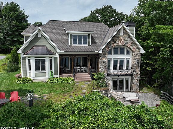 Flawlessly built custom lakefront home boasting superior amenities and stunning views of Saratoga Lake. This residence offers a blend of architectural elegance and superior craftsmanship that will be loved for generations to come. The custom gourmet kitchen features 2 apron sinks, 2 dishwashers, 2 built in ovens and a new Wolf gas range. Wide planked cherry hardwood floors throughout the upper levels. All 4 bedrooms in upper level have private full baths. Fabulous front porch with retractable screen. With it's own separate entrance, the lower level features a lakeview 1 BR , 1.5 bath in law apt. with full kitchen, laundry and separate radiant in-floor heating. Private 50' Shoremaster dock and platform are included. Boat launch and storage area available. 92 ft. lake frontage.
