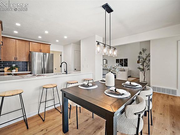 Step into refined living in this fully renovated 4-bedroom, 3-bathroom residence, thoughtfully designed with high-end finishes and exceptional attention to detail. Vaulted ceilings and skylights create a bright, airy atmosphere, while the main-level primary bedroom offers effortless comfort and convenience. The stunning kitchen showcases new countertops, cabinetry and sleek new appliances, complemented by all-new luxury vinyl plank flooring. Updated bathrooms and a newly finished basement add both elegance and versatility. Enjoy seamless indoor-outdoor living with one deck off of the upstairs bedroom and a patio on the main level. The home also includes a 2-car garage. Ideally located less than 1.5 miles from the Air Force Academy and I-25 this move-in-ready home delivers modern luxury in a highly sought-after setting.
