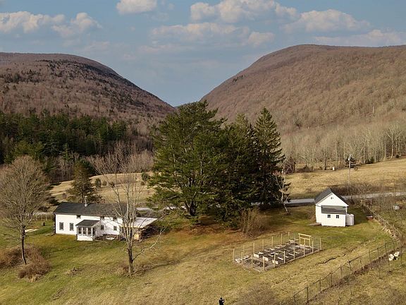 ECHO NOTCH HOMESTEAD. This HISTORIC 1859 FARMHOUSE (formerly the Hare Estate) situated on 9+ ACRES in a MAGNIFICENT SETTING with 360 DEGREE SWEEPING MOUNTAIN VIEWS, SURROUNDED ON THREE SIDES BY 1000+ ACRES OF FOREVER WILD LAND including BEAR PEN VLY STATE FOREST PRESERVE and has UNPARALLELED VIEWS OF WEST KILL's FAMOUS ECHO NOTCH. SKIERS - THIS IS NIRVANA - situated between FOUR SKI RESORTS (see attached map). The farmhouse is fully updated with new windows, roof, electric and heating system, but retains the charm and details you love! The heart of the home is the GORGEOUS GOURMET KITCHEN with SOARING CEILINGS, WOOD-BURNING STOVE and RUSTIC BEAMS. The OPEN-CONCEPT-PLAN includes a LARGE PARLOR with working FIREPLACE. FILLED WITH NATURAL LIGHT and sliders that open to a HUGE NATIVE BLUESTONE PATIO! Room for all with 4 LARGE BEDROOMS (each with mountain views) and 3 full baths. Property features a SWEET BARN that could be a cool studio space or home office, a small apple orchard, fenced in garden and a perfect fire pit. Close to all area attractions including West Kill Brewery, farm markets, restaurants, hiking, kayaking and only 2 hours from the GWB! YOUR CATSKILL DREAM AWAITS!