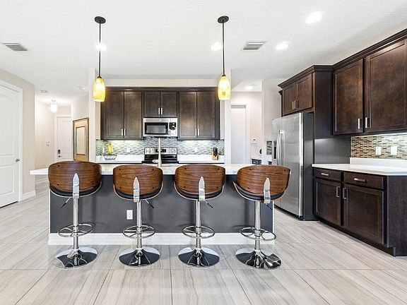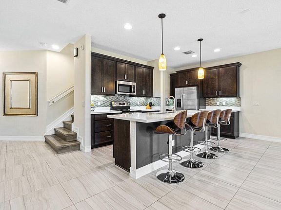 Spectacular! This stunningly updated 3-bedroom + loft/den/office, 2.5-bath, 2-car garage home truly has it all. Built in 2018 and beautifully maintained, it offers the perfect blend of modern design, comfort, and convenience. You'll fall in love with the large open floor plan and chef's dream kitchen, featuring a massive quartz island, state-of-the-art stainless steel appliances, morning bar, and custom-built pantry. The home is filled with natural light and designed for entertaining, with an inviting screened-in patio and a fully fenced backyard ideal for relaxing or dining outdoors. No carpet anywhere!! -- porcelain tile spans the entire main level, and luxury vinyl flooring continues throughout the second floor for a clean, modern look. Every bedroom features soaring ceilings and custom California Closets, with a primary suite closet that's truly to die for a dream space for any wardrobe lover. Plantation shutters, hurricane-impact windows, and sliding glass doors add the perfect finishing touches to this 2,222 sq. ft. masterpiece.