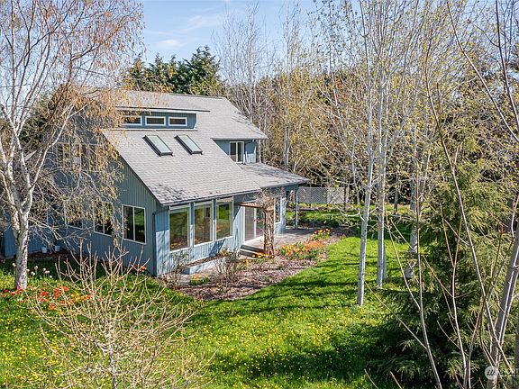 Charming mountain view home on a lush acre at the end of a quiet cul de sac in the Dungeness Valley. Set in Sequim's famous rain shadow this property has been nurtured over the years providing a park like setting with colorful vegetation that changes throughout the year. Large living room with large windows to your beautiful yard and the Olympic Mountains beyond. Primary suite on main level plus a comfortable sun room as well as a finished shop area that could be converted back to and 2nd car garage. Two bedrooms, one very large, with a vaulted ceiling and skylights upstairs along with a 2nd full bathroom.