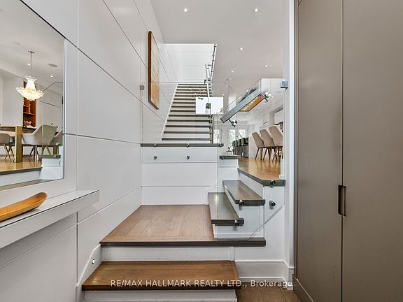 Bold Design. Timeless Luxury. Welcome to 62 St. Germain Avenue. Situated on an extra-deep 25 x 150 ft lot in the heart of Lawrence Park North, this custom-built 4+1bedroom home delivers over 2,300 square feet of above-grade luxury living in one of Torontos most sought-after neighbourhoods. From the moment you arrive, you're met with refined curb appeal - a limestone facade, black-framed windows, and an integrated garage with interlock driveway to set the tone for whats inside. Step into a sun-filled front living room with oversized bay windows, followed by a statement dining space with a custom wine cabinet and built-in storage every inch thoughtfully designed. The chefs kitchen is a showstopper: oversized waterfall island, integrated Sub-Zero fridge, Wolf 6-burner gas range, panelled dishwasher, and built-in microwave. The open-concept family room features a stunning gas fireplace and double French doors that lead to a large deck and fully landscaped backyard perfect for indoor/outdoor entertaining. Enjoy 10-ft ceilings on the main, 9-ft upstairs, and a soaring 11-ft basement with full in-floor radiant heating. White oak hardwood runs throughout the main and second floors, paired with heated floors in the foyer and bathrooms for ultimate comfort. Upstairs, discover four spacious bedrooms with coffered ceilings and large windows and custom built-in closets. The serene primary retreat includes two walk-in closets and a spa-inspired 5-piece ensuite with soaker tub, oversized glass shower, and double vanity. A dramatic panelled feature wall that runs from the top of the home to the bottom along with custom stairwell lighting add next-level design. All just steps to Yonge Street's vibrant shops, top-rated restaurants, Lawrence subway, and within the catchment of Bedford Park Elementary and Lawrence Park Collegiate. This is where timeless elegance meets modern convenience a turnkey home for the discerning buyer.