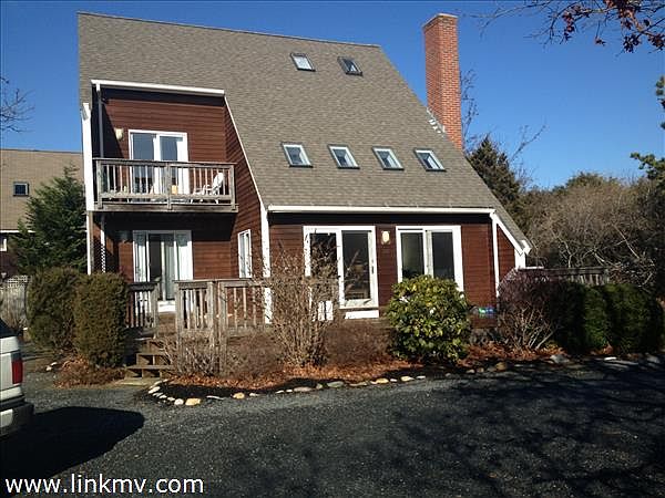 MANY RECENT UPDATES AT THIS KATAMA COMPOUND IN EDGARTOWN ESTATES - NEW WOOD FLOORS HAVE BEEN INSTALLED IN THE LIVING ROOM AND KITCHEN (photos coming soon), NEW FLOORS IN GUEST HOUSE, NEW KITCHEN CABINETS, GARAGE HAS BEEN PAINTED & LANDSCAPING IS BEING INSTALLED. 4 bedroom main house AND a detached two car garage with one bedroom apartment above. The home has been extremely well maintained and sits on a half acre of land, in close proximity to both South Beach and Edgartown Village. Sliders lead to the south facing deck, which is ideal for those warm summer evenings. Other great features include a brick fireplace, hardwood floors, balconies off two of the bedrooms and a third floor that provides a second living area. There is a full basement that offers potential for additional living space. The private second floor garage apartment (built in 1995) has ample space and its own wrap around deck. There is also a room on the main level of the garage with half bath. A custom built cedar storage shed is the perfect spot for bikes & beach toys. The nearby bike path leads all the way to town and south beach and the Katama General Store is right down the street