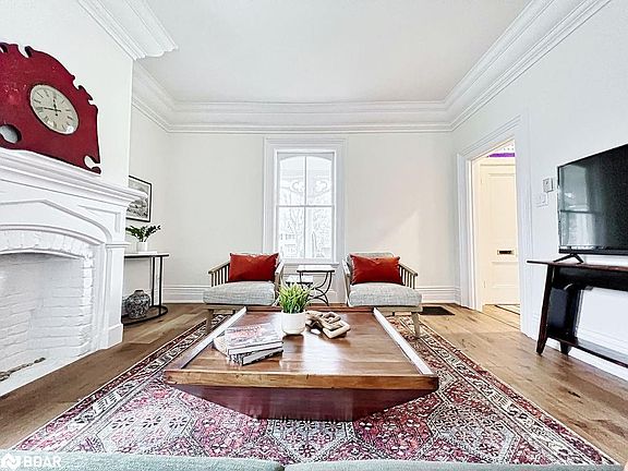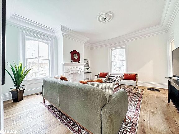 Step back in time while enjoying modern comforts in this breathtaking Gothic Revival home. Originally built in 1876 and beautifully renovated to preserve its timeless charm, this Heritage Home has been fully renovated. The Main Floor consists of Spacious primary bedroom with an elegant ensuite and a walk-in closet. A large principal living room offers ample space for relaxation, while the renovated kitchen boasts 9-foot ceilings and blends modern touches with the homes original character. The exquisite original trim, woodwork, and windows further enhance the charm. Second Floor: Two additional bedrooms, a fully renovated bathroom, laundry room, and a home office provide plenty of space. There's also a rear loft that offers potential rental income of approx. $700/month. Original Details: The home retains its original fireplace, baseboards, and tongue-and-groove flooring and ceilings, preserving its authentic charm. Outdoor Space: Situated on a generous 90x150 lot, surrounded by mature trees and ample parking space. Located within walking distance to shopping, Sunnidale Park, trails, a dog park, and more, this home sits in an excellent neighbourhood with easy access to Highway 400. Approx. 2,346 sq. ft. This property combines historical elegance with modern living, perfect for those seeking a unique home in a prime location. Lots of room for an addition or carriage Garage.