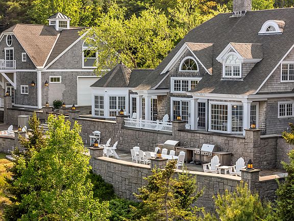 Eastern Watch, located just outside of downtown Bar Harbor, evokes a sense of the by-gone Rusticator Era of the town's Gilded Age near the old estates of the Vanderbilts, Kennedys and Acadia's founder George Dorr. The classic New England cottage perched high above Frenchman Bay on Sols Cliff has views from the Porcupine islands to the Egg Rock lighthouse and beyond. Enjoy watching cruise ships and whale watch boats passing just below the oversized 130-foot granite and bluestone terrace with outdoor kitchen and granite fireplace. The 4 bedroom main house is a John Libby timber frame with a three story cathedral living area that boasts a granite fireplace and stonework. Built in 1995, the home was totally remodeled in 2006. Beautiful master suite with views of the bay and islands; master bath with walk-in shower area with soaking tub and just around the corner is your own gym area. The second floor of the carriage house is a two bedroom apartment with a kid's bunk room and play loft above. This beautiful estate sits high on a bluff that is over 100' above the ocean so you'll always have the same shoreline and view. You can walk into town or connect on to hiking or biking trails right from the house to access Acadia National Park