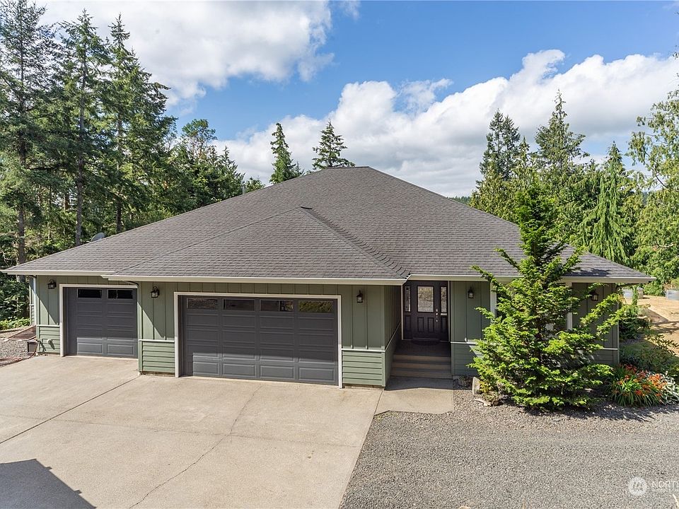 Nestled into the ridgeline & overlooking Beaver Valley awaits this completely custom built one level home. With vaulted & 9-foot ceilings throughout every room feels open & spacious. The great room concept floorplan is anchored by the unique indoor to outdoor fireplace that can be enjoyed both from the indoor great room & the covered back deck. The beautiful slate floors beautifully accent floor to ceiling cabinets in your light filled kitchen. The primary bedroom features a custom slate walk-in shower with dual shower heads & jetted soaker tub. Plenty of room for your toys & projects with the attached 3 car garage and a10x16 storage shed. Walking trails have been carved in around the property which make it feel like your own private park.