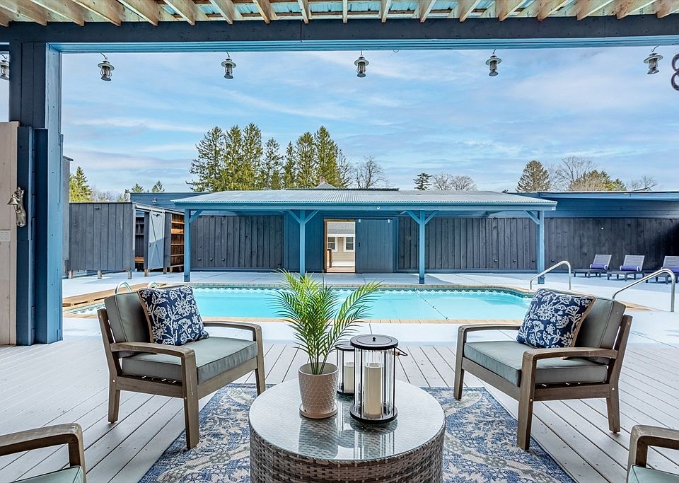 Remodeled Village Colonial brimming w/ exceptional updates, timeless charm & enduring economic benefits! Fall in love with the 2022 center island chef’s kitchen—a culinary haven featuring plentiful cabinetry, a convection oven w/ air fryer, 5-burner gas range, pot filler & beverage chiller. Experience your very own stay-cation retreat! Entertain w/ ease in the show-stopper outdoor compound boasting a heated saltwater inground pool, expansive covered patios, outdoor shower & cozy fire pit area perfect for s’mores under the stars. A versatile guest house offers endless possibilities for work, play, or extended stay. A discreet seller-owned solar array keeps costs low & offers seasonal income. Ask about the 2.25% ASSUMABLE MORTGAGE! Enjoy the peace of mind of a 50-year roof, recent windows, heat & hot water, updated plumbing/electrical, whole house insulation, low maintenance vinyl siding & Generac generator. This rare gem masterfully blends lifestyle, efficiency & enduring quality.