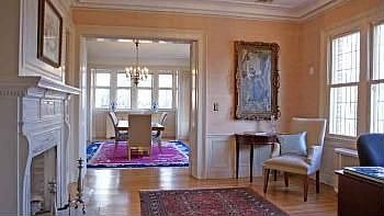 Stately 2.2-acre, 17-room Tudor Colonial w/gorgeous detail: Mult FP, fine moldings, refin floors, exquisite wood-paneled foyer w/chandelier; bright all-year sunrm/den; updated EIK. Great space for extended family with two master bedrooms, one at each end of the house, each with attached bath; finished basement family room w/FP and adjoining vintage English pub bar. Huge, bright kitchen w/center island, granite countertops, breakfast/computer area; charming 1st floor sitting rm w/decorative FP. Finished 3rd fl perfect for home offices; two cedar closets; covered patio off sunroom. Scenic property is terraced, w/second level just right for your dream pool. Taxes appealed to $44,756; another tax appeal in the works. Roof only 9 years old. Garage conveyed as is. Wonderful, classic Montclair home.