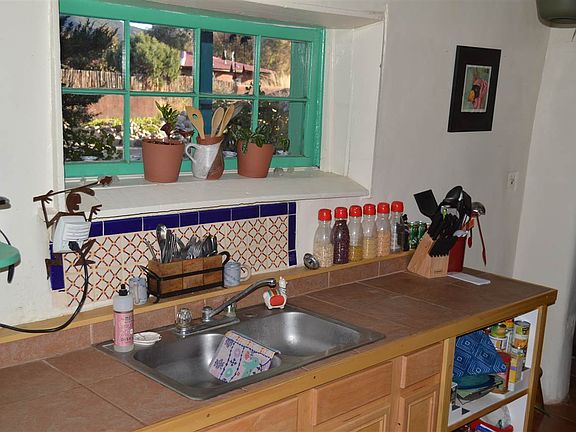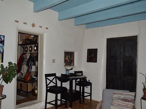 This old Adobe Hacienda hidden away form the maddening crowds offers peaceful, pastoral living .Authentic, traditional Ranchos de Taos warmth. Coved Vigas, tile floors, thick adobe walls, Kiva fireplace in the warm charming cozy living room. Property offers covered front portal as well as fenced property with fruit trees just for your use. A gem and a great buy