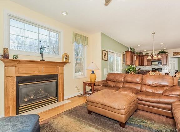 Move in ready 5 bedroom 2006 build colonial in desirable neighborhood. Modern décor with hardwood floors throughout living areas with plenty of natural light and custom features. Open area family room with gas fireplace open to eat in kitchen with center island, cherry cabinets and sliders off to trex deck with fantastic views of skyline. Bright dining room area with decorative columns open to 2nd story foyer. Upstairs to 4 spacious bedrooms and full bath, 1st floor master suite with walk in closet, full bathroom with dual sinks, soaking tub. Full walk out lower level already ready for your finishing touches with plumbing installed for full bath. 1st floor laundry for convenience, city utilities and gas heat and central air! Close to shopping and highway access. Plenty of room in this lovely, one owner well maintained home. Motivated to sell!