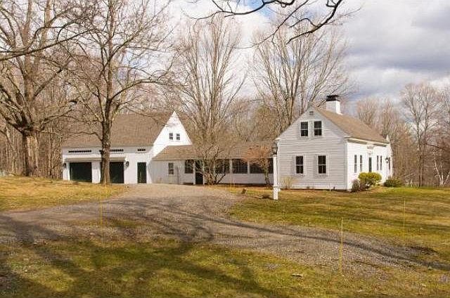 This restored antique cape, located on a scenic country road, features three fireplaces, a beautiful original beehive oven and exposed hand-hewn chestnut beams. The kitchen area has been recently updated, with professional grade appliances, granite countertops and marble backsplashes. The lower floor includes a large modern master suite with recently updated master bath, featuring beautiful tile and travertine surfaces. Large French doors lead from the family room area to a private brick patio in the rear of the house. The second floor has two charming bedrooms, one with wide pine floors, walls and ceiling. The other bedroom features a traditional âwhalebackâ ceiling and closets built into the eaves. A two story attached post and beam carriage house serves as an oversized garage, with a full upstairs level providing ample storage and future expansion potential. Other features include new roof and whole-house backup electricity system, and a whole-house water softening system.