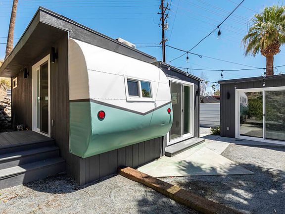 Welcome to 62 Venus St.Stunning South Palm Springs location! This home sits beneath the Santa Rosa Mountains in So Palm Springs, Horizon Village, a vibrant all-age community situated just below the iconic Bob Hope Home & Araby hiking trail. Close to Vons/Trader Joes/Target & 7 minutes from downtown Palm Springs, only 3 miles from Palm Springs International Airport. Enjoy the amenities, including heated pool & spa, clubhouse, shuffleboard, gym, library, doggie park, and much more. Enjoy the Palm Springs lifestyle in this stylish gated miniature compound. This home has been fully renovated with a designer touch The home backs up to the mountains and features a locking corrugated metal fence allowing for privacy.The courtyard features desert landscaping and parking for 2 cars with sail shades. Once inside you will find approximately 350 sq ft of well designed efficient living space. The kitchen features quartz style counters, new cabinets, slow close drawers, new gas range and stainless refrigerator. The bathroom features a fully tiled shower with sleek modern fixtures. A new combination washer dryer is tucked in its own closet to maximize space. The home features new sliders and windows,recessed lighting,new laminate flooring and designer wallpaper. A glass slider opens from the bedroom to a private deck. An additional structure with glass slider and mini split provides an additional 80 sq ft that can be used for yoga/art/utility space.