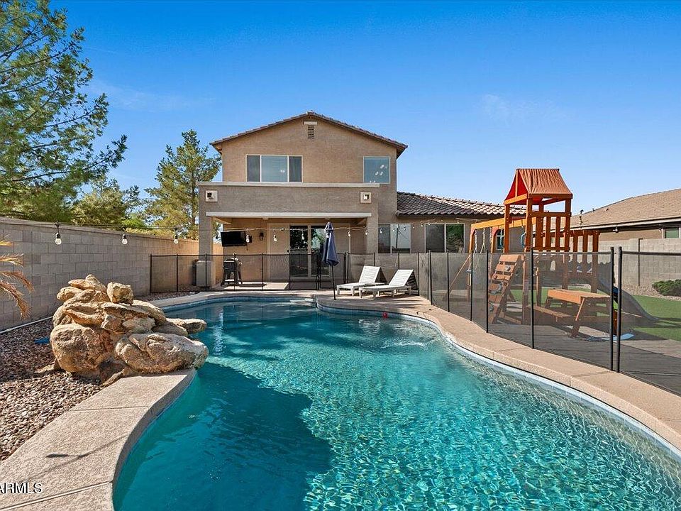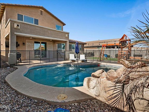 Welcome to Fulton Homes ''Casablanca'' Model with a 4 car tandem garage! This spacious beauty offers over 3,000 sq. ft., 4 bed 3 bath with downstairs office/den + bath. Kitchen boasts 42 inch staggered cabinets, granite counters, gas range huge island with bar seating and a large pantry! Upstairs features three additional guest bedrooms and a master retreat with separate shower & tub and large walk-in closet. Outside your 16 ft glass slider enjoy your own private resort with mature landscaping turf and a beautiful 2017 Pebble-tec play pool with water feature, Baha deck and variable speed pump. RV gate, water softner, security system and a huge laundry room with utility sink. Ironwood Crossing offers 21 parks, walking paths, 2 community pools w/splash pad, frisbee golf course, soccer field, bocce ball, beach volleyball, basketball courts, mountain views.