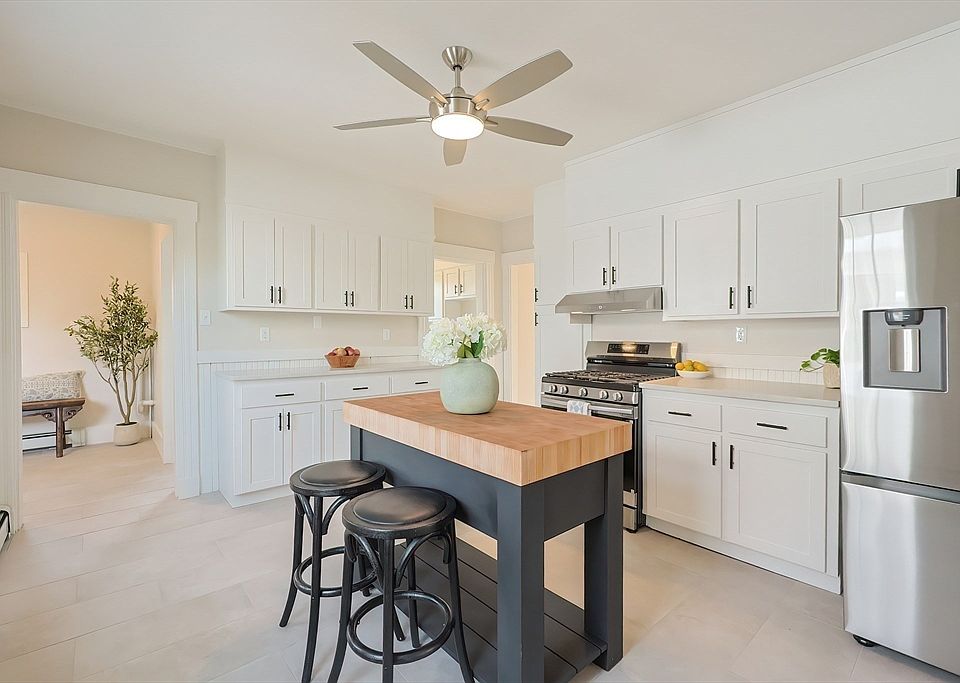 Bright white kitchenMudroom with laundry hookupsOverlooks fletcher fieldItalian porcelain tileSun-filled living spacesQuartz countertopsStainless steel appliances