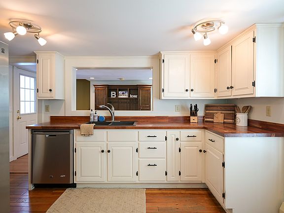 This charming updated three bedroom cape is situated on a two acre lot. This home features a cozy layout featuring hardwood floors throughout the kitchen, dining area and the living room. There is also a spacious first floor bedroom and full bathroom. The upstairs second bedroom includes a 3/4 bath. The entry/mudroom has the washer and dryer and connects you to a large primary bedroom above the garage. There is a deck on the front of the house to watch the spectacular sunsets and another large one on the side of the house which is the perfect place for outdoor relaxation surrounded by beautiful serene nature.